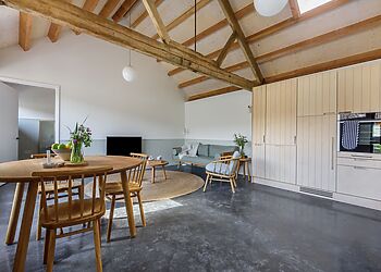 - Open-plan kitchen seats eight guests